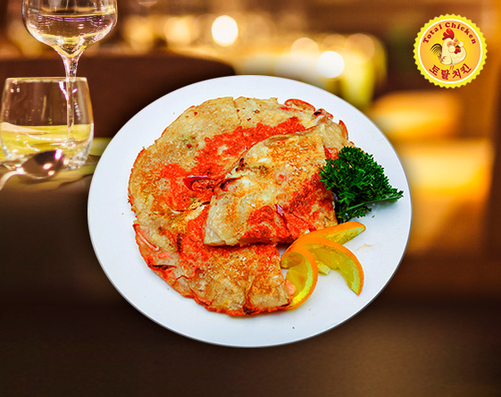 Bánh xèo hải sản với kim chi là một trong những món ăn ưa chuộng tại Total Chicken.